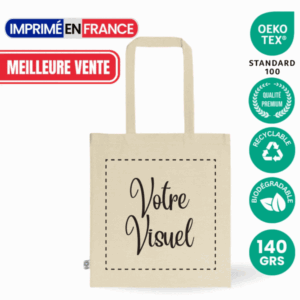 Tote bag double certification gots/max havelaar 150grs ; Dimensions du sac : 38* 42cm ; Dimensions des anses : 65*2,5cm ; Zone de marquage max : 28*28cm ; Marquages faits en France dans nos ateliers ; Sacs avec points de croix automatiques ; Sacs livrés repassés