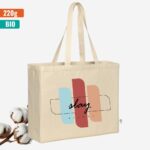 Tote bag coton bio certifié gots 150grs ; Dimensions du sac : 38* 42cm ; Dimensions des anses : 65*2,5cm ; Zone de marquage max : 28*28cm ; Marquages faits en France dans nos ateliers ; Sacs avec points de croix automatiques ; Sacs livrés repassés